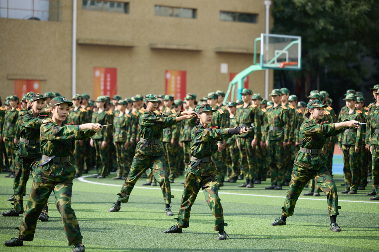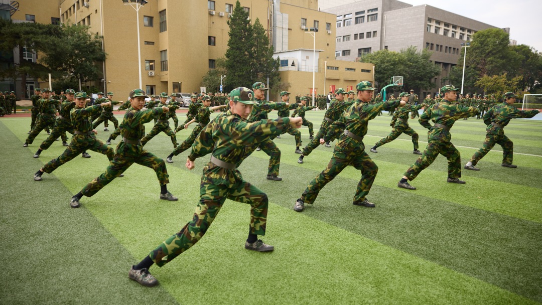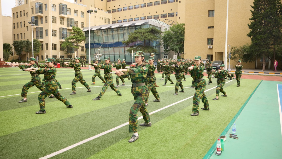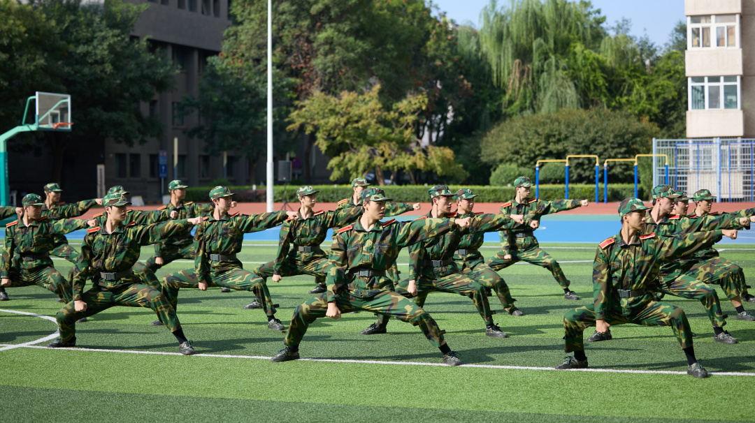 军训期间,2025级新生接受了包括队列、正步、军体拳、匕首操等在内的系统化军事训练。训练场上,学员们的动作从生涩到熟练,不仅实现了军事技能的掌握,更在意志品质上得到了淬炼。他们以严谨的态度对待每一次立正、稍息与齐步走,以饱满的热情投入军体拳与匕首操训练,充分展现了北舞学子特有的精神风貌与毅力。