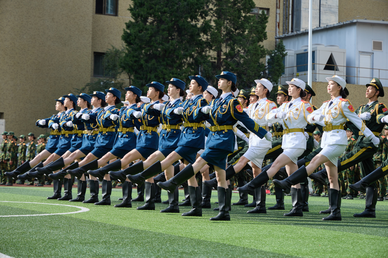 特色军事科目汇报中,匕首操方阵刚柔并济,军体拳方阵气势如虹,充分展现了北舞学子昂扬向上的精神风貌。