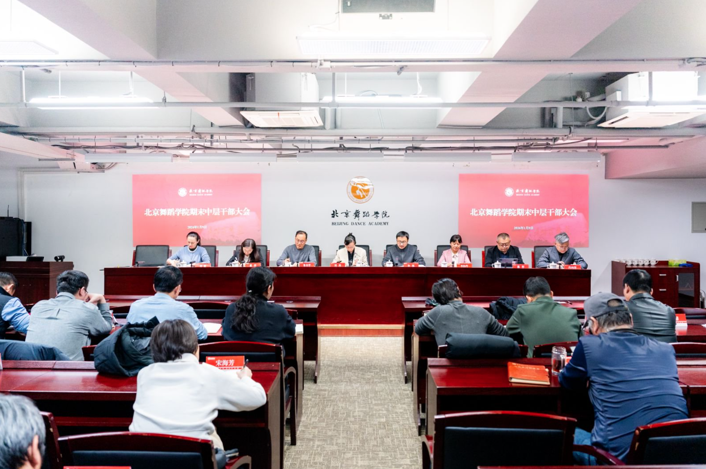 许锐院长对2026年寒假期间的工作安排和工作提示作出部署。他指出,2025年是学院发展历程中极不平凡的一年。在全体干部的共同努力下,学院跑出了“北舞速度”、彰显了“北舞特色”,特别是在12月31日成功获批北京市首个艺术类高校中外合作办学机构“北京舞蹈学院三一拉班学院”,为“十四五”收官交出亮眼答卷。他强调,寒假既是休整期,更是推进重点工作的关键窗口期,需重点抓好以下工作:要聚焦核心任务,强化责任担当,抓好申博攻坚与新校区建设工作,按照市委教育工委部署,组织召开好2025年度处级领导班子民主生活会,并以从严的纪律,抓好巡视反馈后的整改工作;以最高标准落实本科及附中招生考试工作,严守安全底线,有序做好寒假师生的安全教育,严把意识形态责任和网络意识形态安全。统筹保障各领域安排,高质量推进各项工作,要落实好就业工作“一把手”工程,全力提升就业率;研究新版人才培养方案的实施工作并配套做好有关教研、教材建设等思考;有序推进重大演出、外事交流和实践实训工作,确保圆满完成中央团拜会、赴法国参加春晚等工作,推进各类艺术实践任务及舞剧《锦鲤》《中关村》等的研讨会及创排工作;高质量完成教育部有关科研领域的系统整治工作及各类项目申报、统计、指导工作;统筹推进联合国教科文组织舞蹈教席申报工作;继续教育学院和舞蹈考级院统筹发展与安全问题,有序推进学历教育、非学历教育,学生考级、师资培训、展演活动、研学游学等各类工作。学院财务、审计、国资、后勤、保卫、网络等部门全面做好2025年决算核算、节前走访慰问、安全生产和安全施工、落实值班值守制度、确保寒假各项工作平安有序。同时,对假期内有关严格履行重大事项请示报告制度提出要求。
